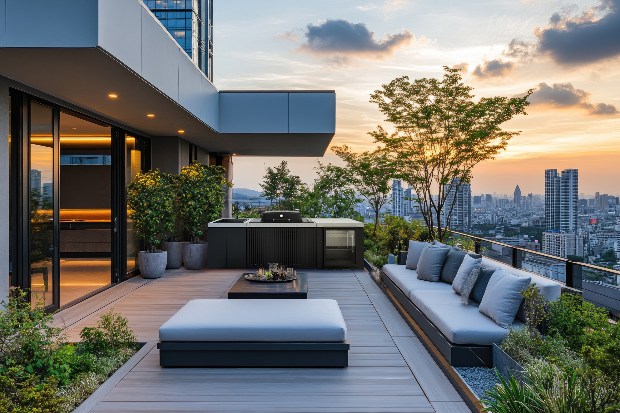 Outdoor-Bereich. Die Aluminiumplatten in Marinequalität sowie die robuste