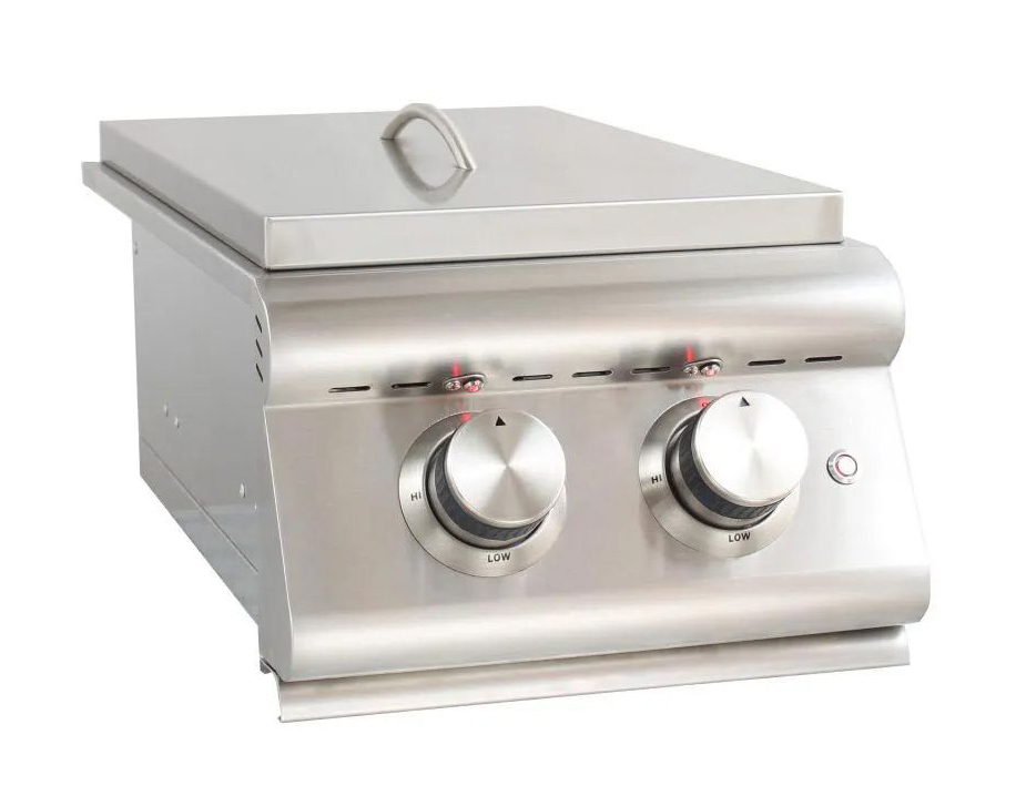 Der Blaze Built-In Double Side Burner überzeugt mit zwei leistungsstarken Messingbrennern mit je 3,5 kW und einem robusten Edelstahlgehäuse - perfekt für Outdoor-Kochabenteuer. Der abnehmbare Deckel schützt die Brenner vor Witterung, während die Push-&-Turn-Zündung schnelles Anfeuern garantiert.