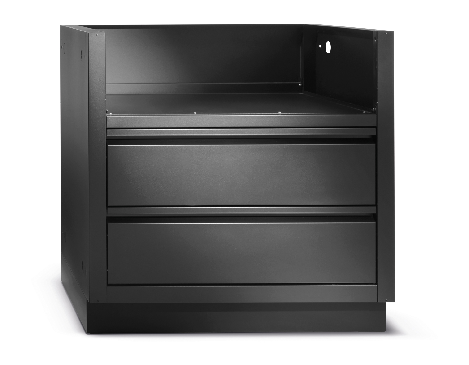 Speziell für die 32-Zoll-Gasgrillköpfe der Built-In 500 & 700 Serie gefertigt, bietet dieses matt schwarze, pulverbeschichtete, glavanisierte Gehäuse erhöhte Haltbarkeit dank des zweischichtigen Pebble-Finish-System aus. Zwei Schubalden aus Edelstahl sind auf leichtgängigen Soft-Close-Schienen montiert und bieten pratischen Stauraum unter dem Grill. Die Installation ist super einfach dank der Aussparungen für Gas und Strom.