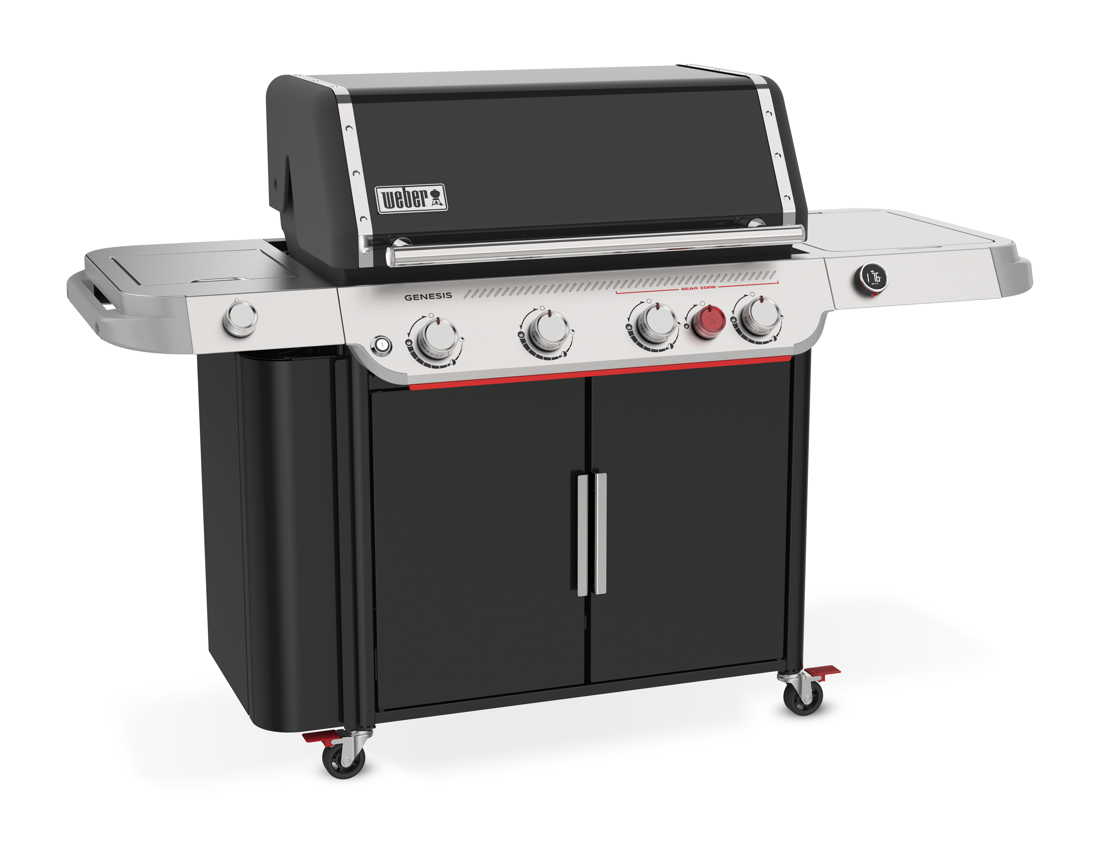 dem leistungsstarken, neu erfundenen Genesis® EPX-435W smarten Gasgrill mit 4 Brennern, Sear-Brenner, Seitenbrenner und WLAN-fähigem digitalem Thermometer.
