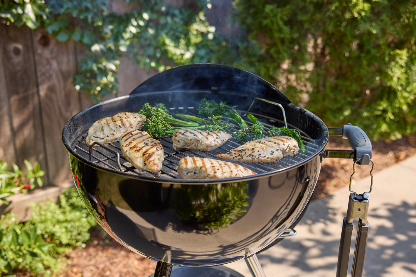 - Mit dem Deckelhaken kannst du den Deckel während des Grillens am Kessel aufhängen.