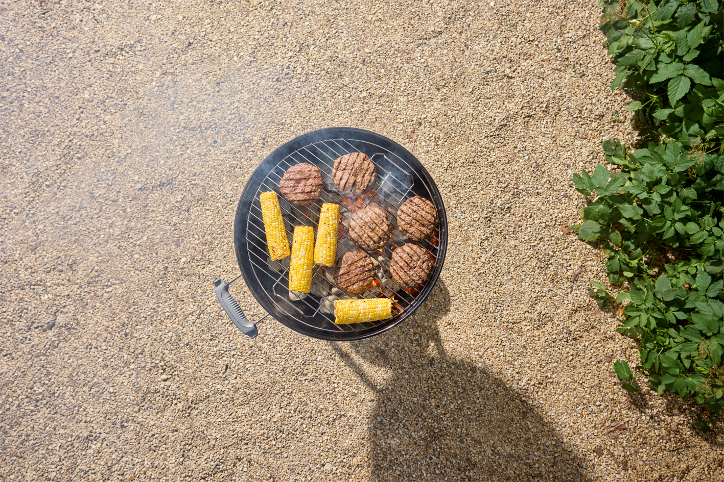 Holzkohle, das Brutzeln eines Sommergrillfests und die ikonische Silhouette des
