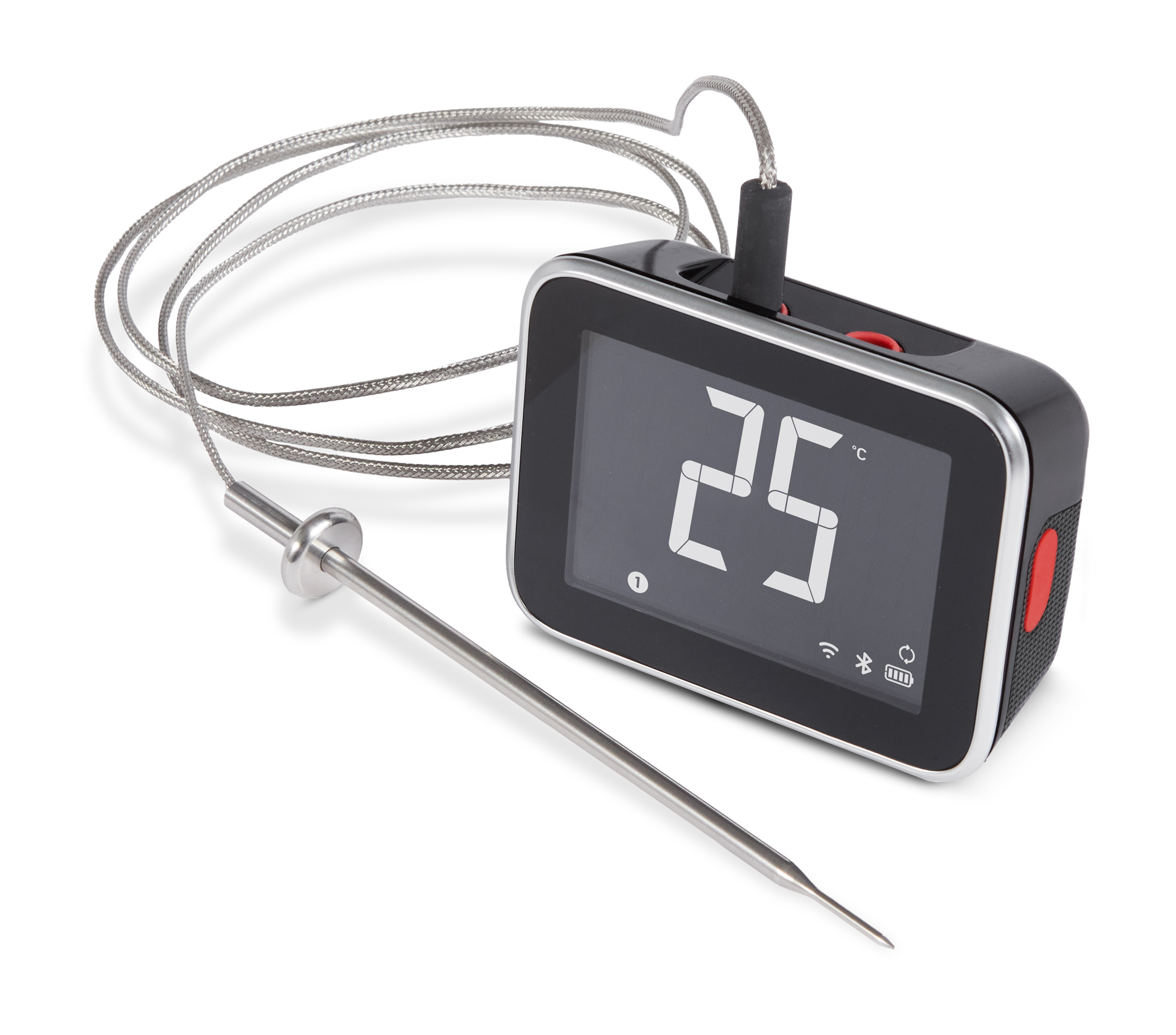 - Magnetische Rückplatte zur Befestigung in der Nähe der Grillfläche, damit das Gerät immer in Reichnähe ist.