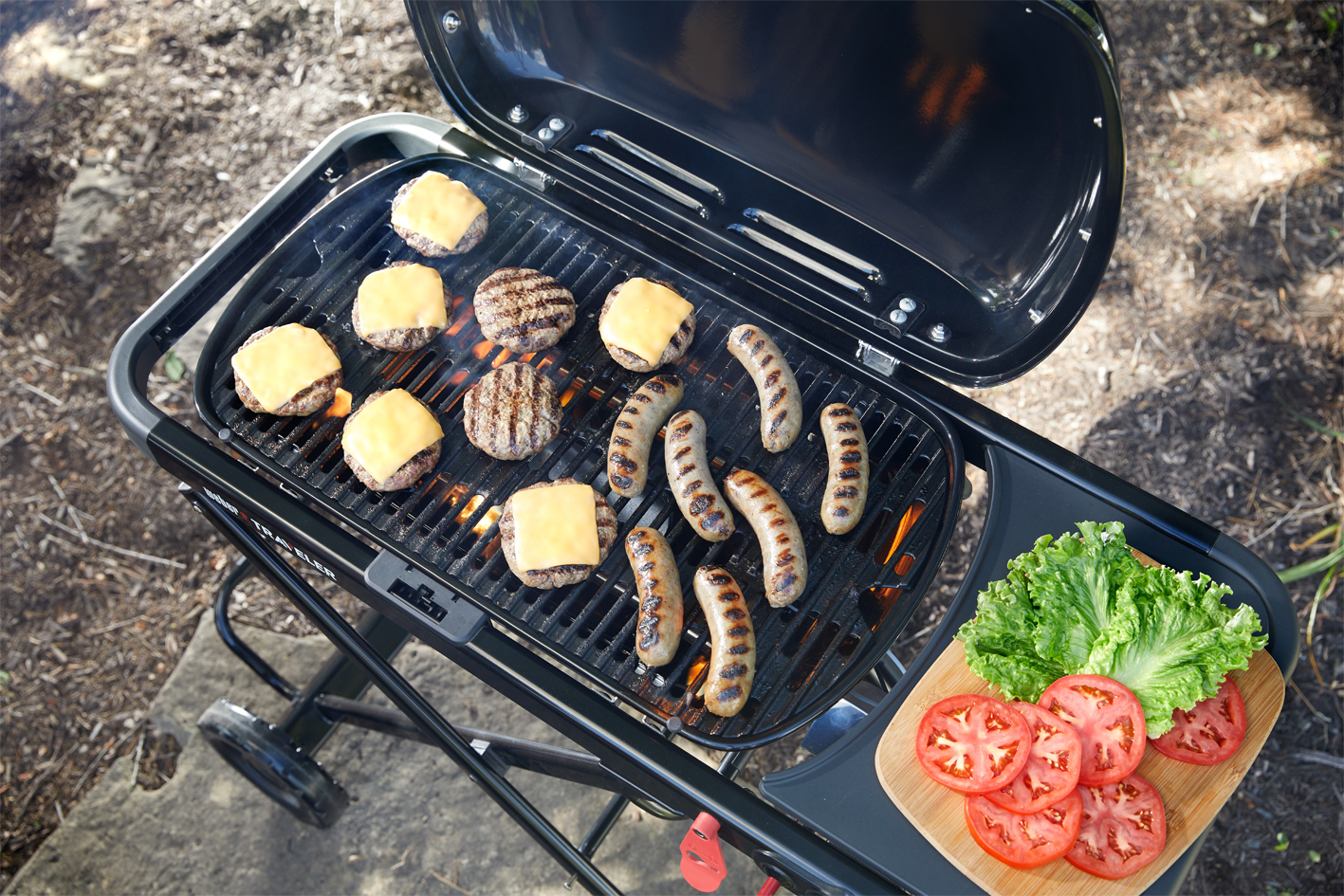 indem du draußen mit dem preisgekrönten Weber Traveler® tragbaren Gasgrill
